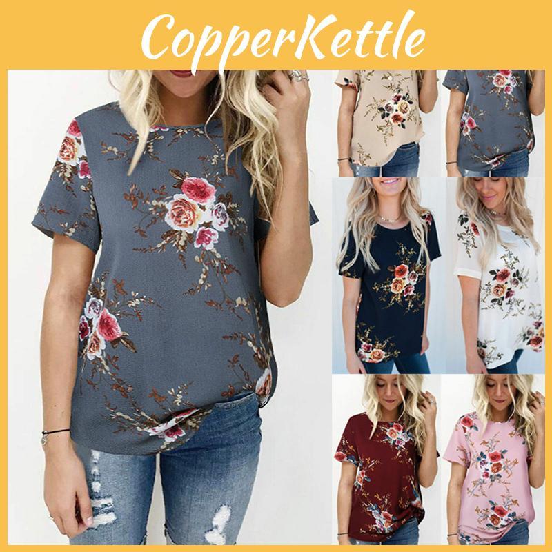 Elegant Summer Women Blouse Floral Print Short Sleeve Loose Casual T-shirt Tops — купить товар онлайн с бесплатной доставкой по всему миру!