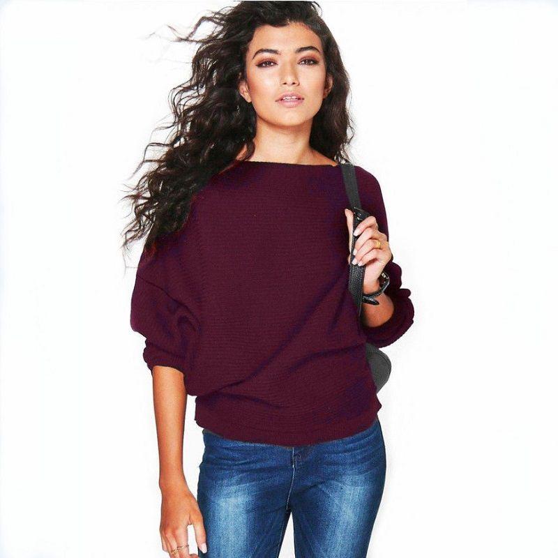 Стильный женский пуловер с длинным рукавом, вязаный свитер оверсайз