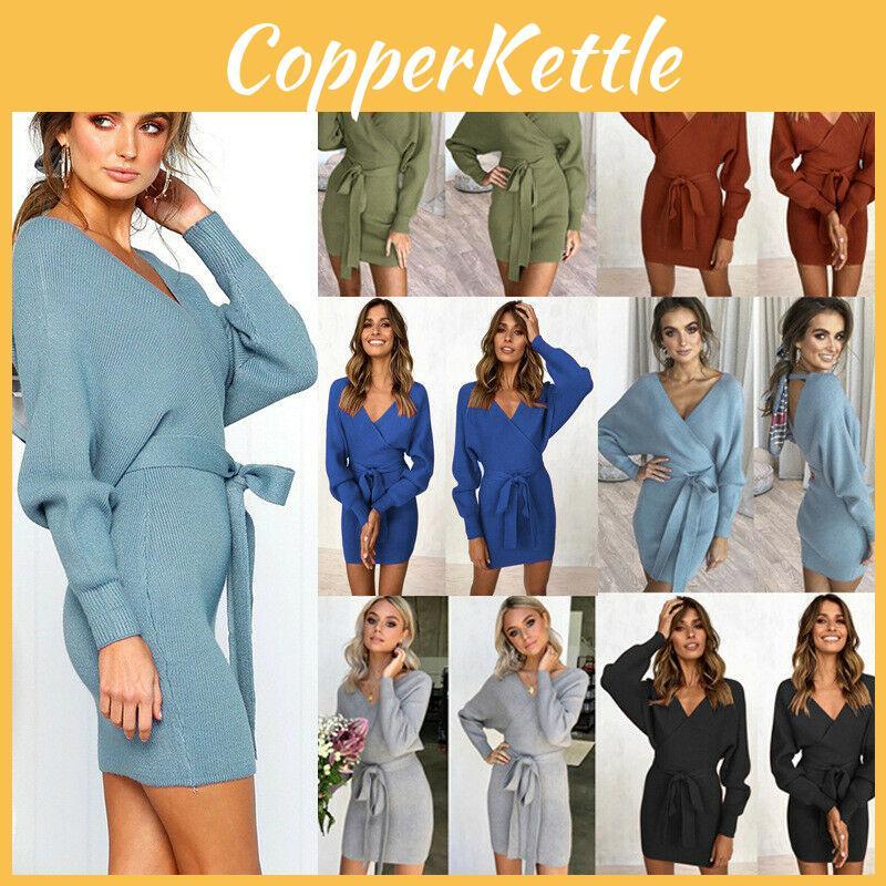 Элегантное женское облегающее платье-джемпер с V-образным вырезом, длинными рукавами и поясом-завязкой