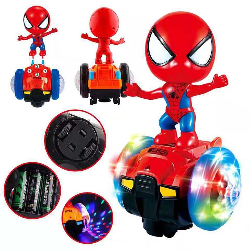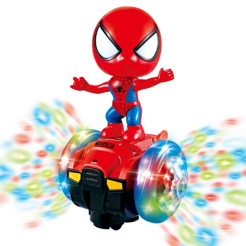 Красочный вращающийся на 360 градусов трюковой самокат Человек-паук со светом и музыкой для детского веселья
