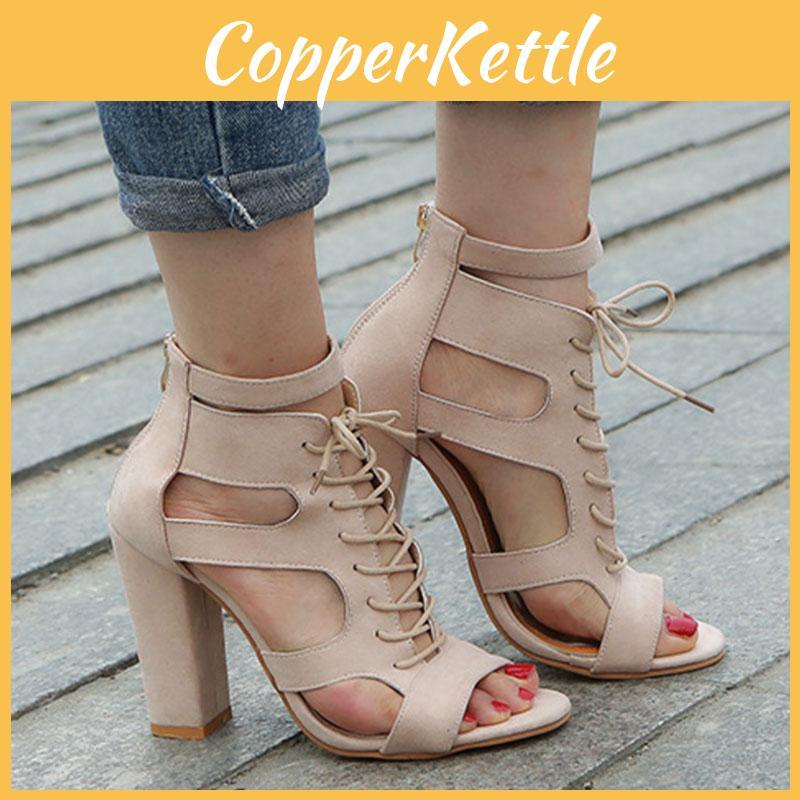 Женский открытый носок шнуровка вверх лодыжка сандалии сапоги высокий толстый каблук римские туфли