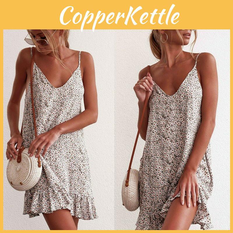 Женский бохо сарафан без рукавов с V-образным вырезом, цветочным принтом, из премиальной смесовой хлопковой ткани