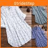 Elegant Women V-neck Long Sleeve Flower Print Linen Shirt Ladies Casual Loose Blouse Top