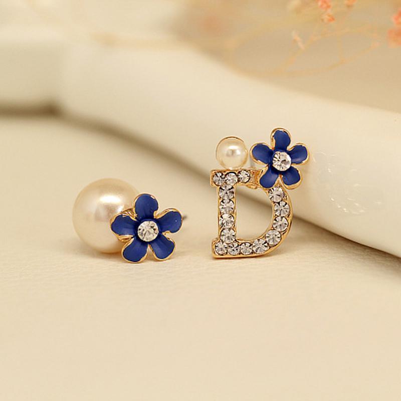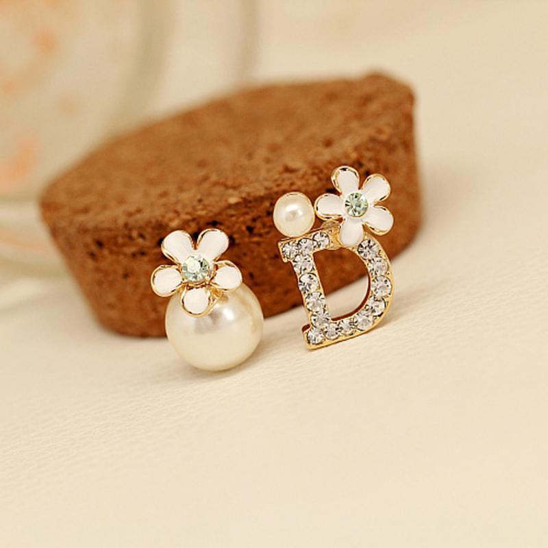 Женские серьги-пусеты премиум-качества с мерцающими стразами и жемчугом