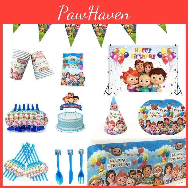 Красочные детские товары для дня рождения с радостными тарелками и счастливыми баннерами