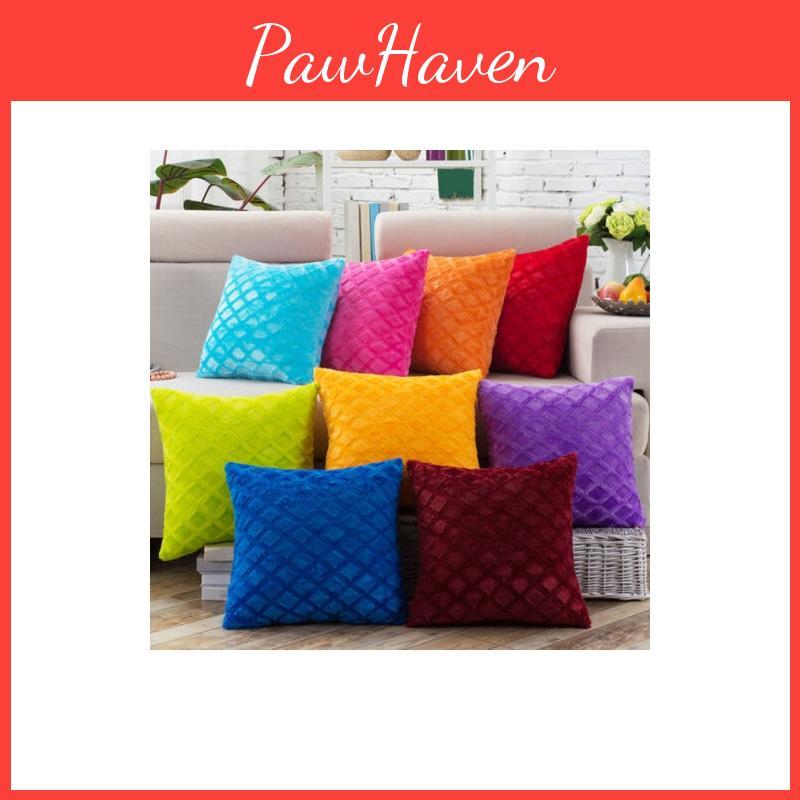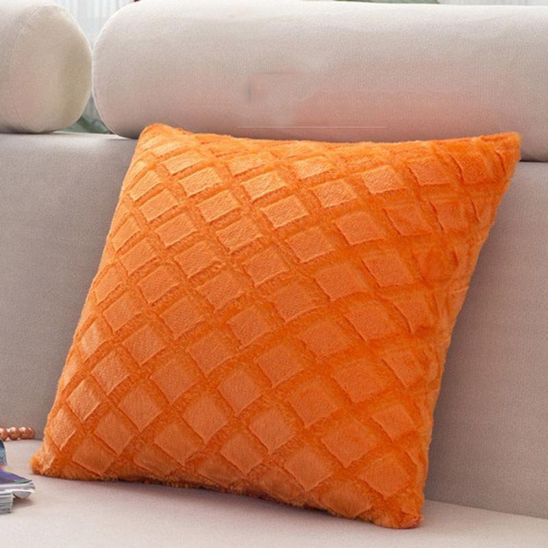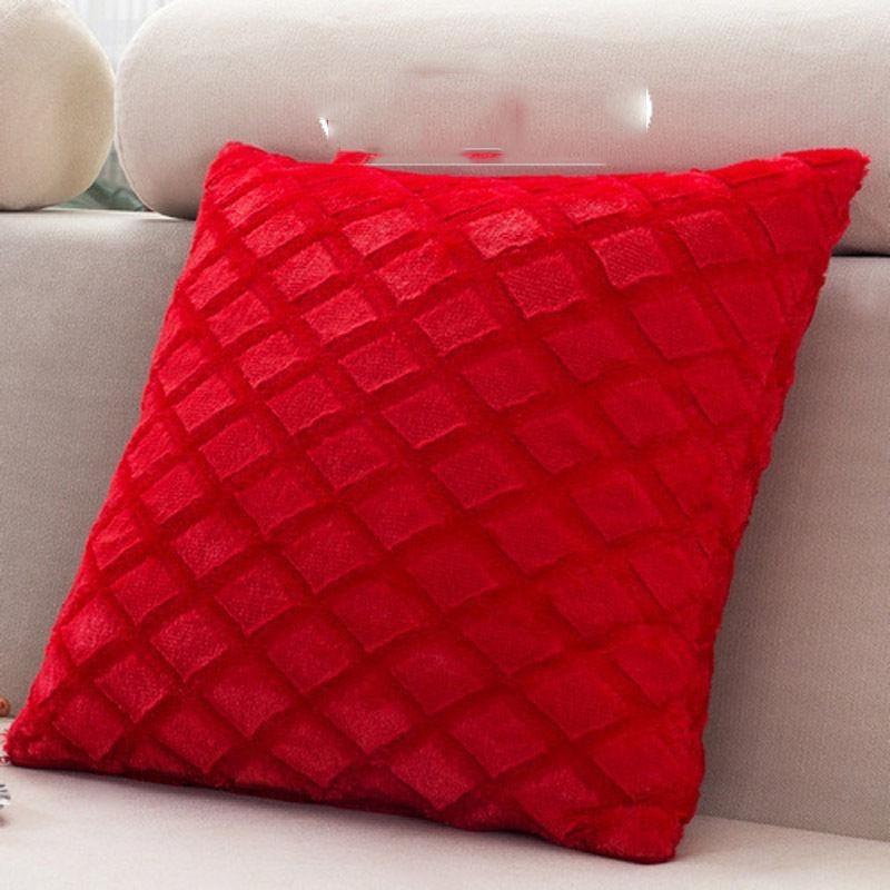 Стильная однотонная яркая наволочка из бархата в клетку для элегантного декора