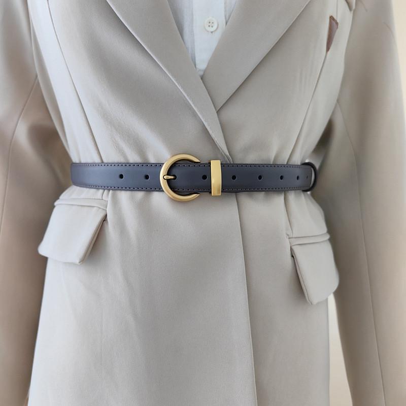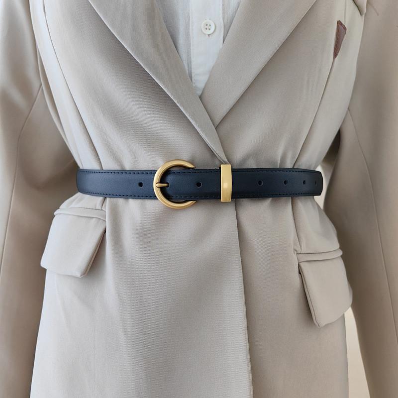 Простой ремень из искусственной кожи для женщин с золотистой пряжкой и в винтажном стиле