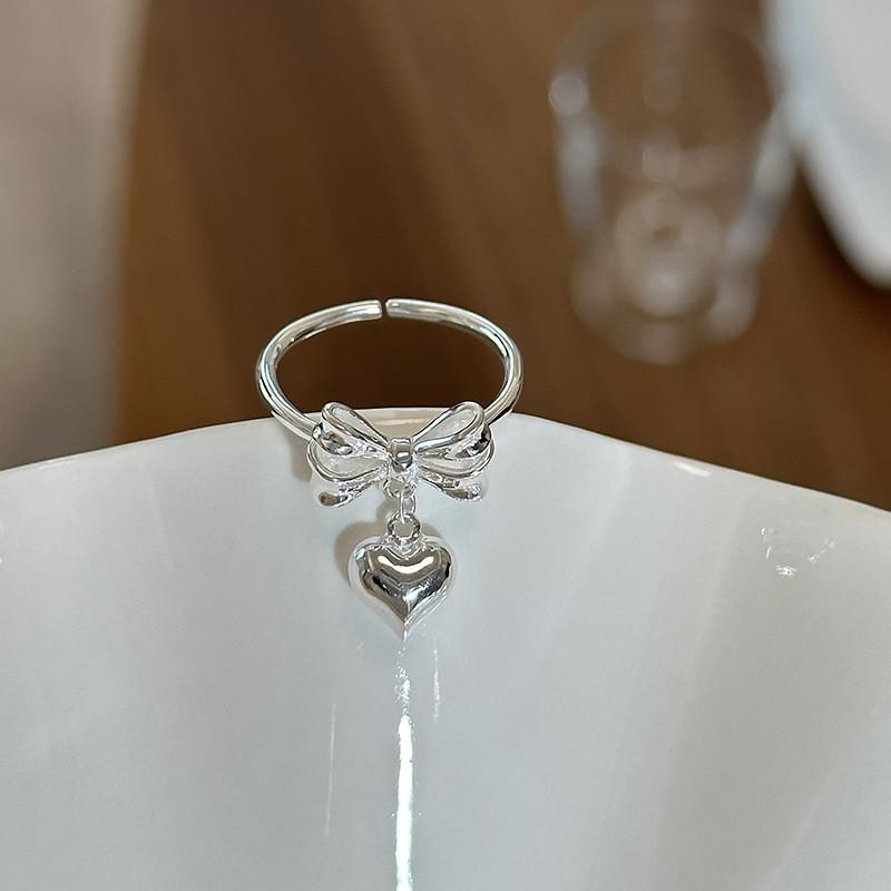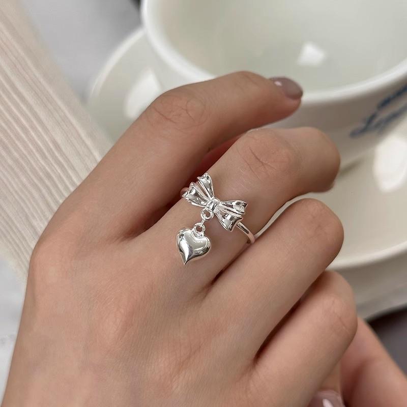 Шикарное регулируемое серебряное кольцо S925 в форме сердца с дизайном банта для женщин, идеально для повседневной носки