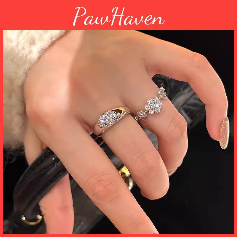 Luxurious Open Adjustable Floral Design Ring For Women Featuring Brilliant Sparkling Diamonds