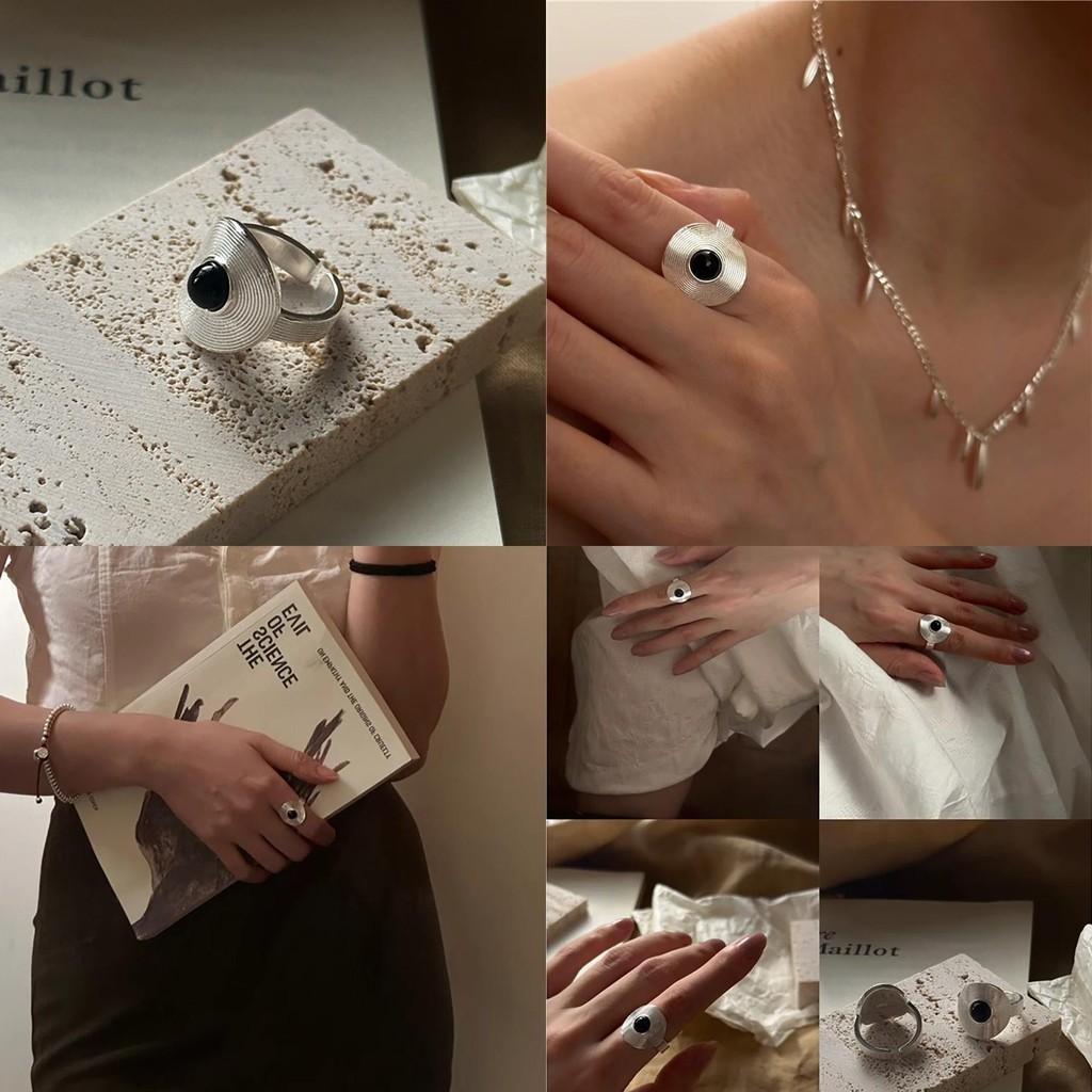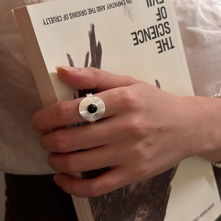 Chic Minimalist Black Agate Ring For Women In Unique New Chinese Style Adjustable Fashion