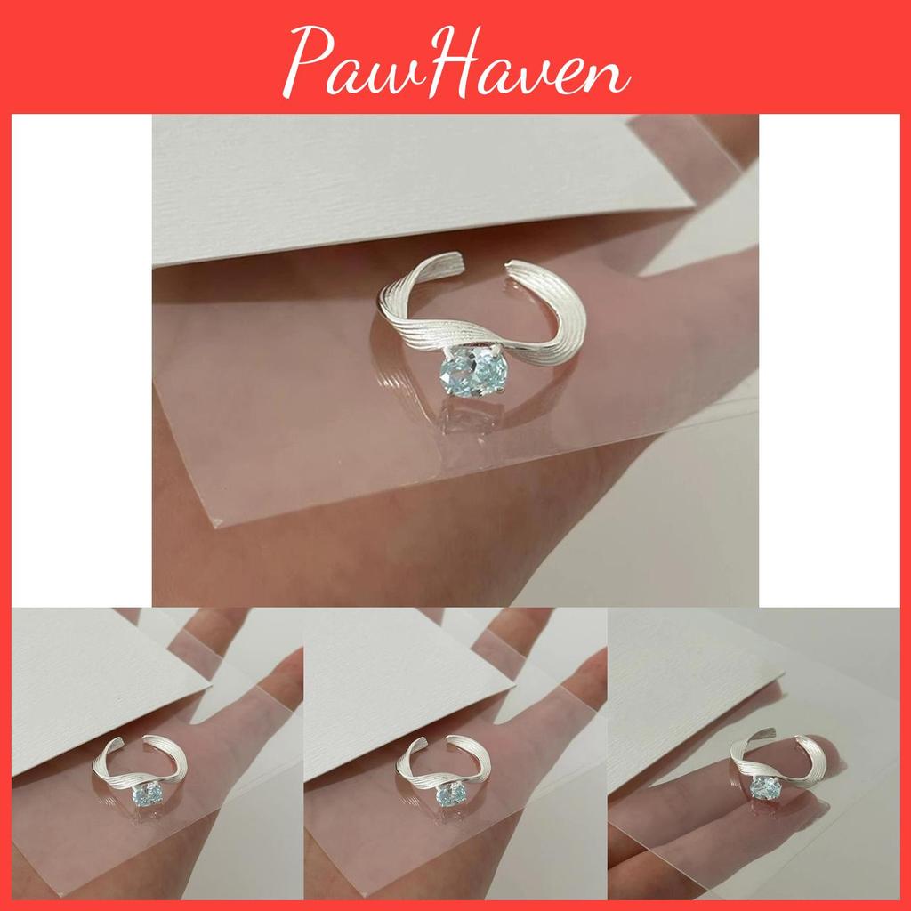 Elegant Blue Zircon Copper Ring For Women Unique Adjustable Open Finger Style