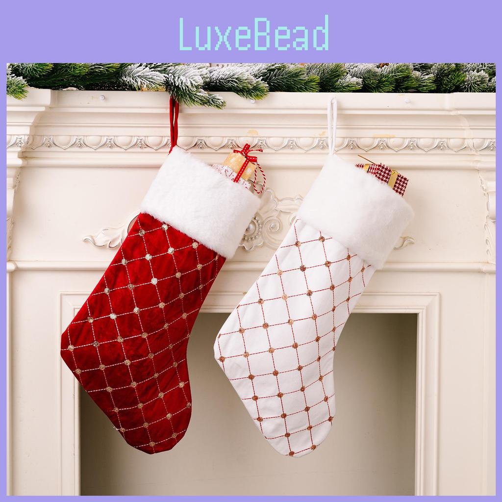 Decorative Christmas Socks With Velvet Borders And Glittering Details Ideal For Kids Gifts And Holiday Celebrations