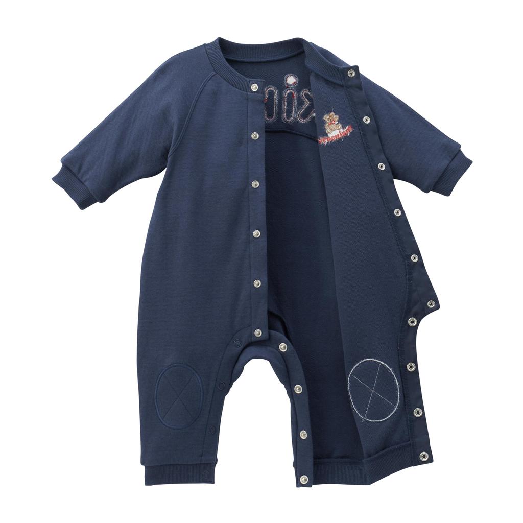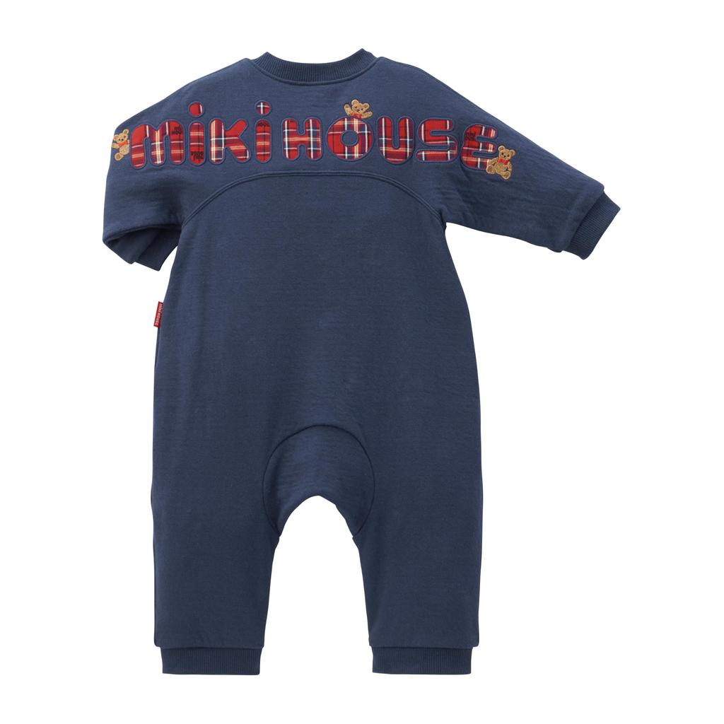 ☆ This MIKI HOUSE coverall/long-sleeve romper features a bear embroidery and a checkered pattern on the back logo. The striking back logo is complemented by a cute bear accent on the chest and knee patches. The bonded weave canopy material can be worn in three seasons: fall, winter, and spring. The crotch fastening allows for easy opening, making this MIKI HOUSE coverall perfect for changing clothes and diapers.
