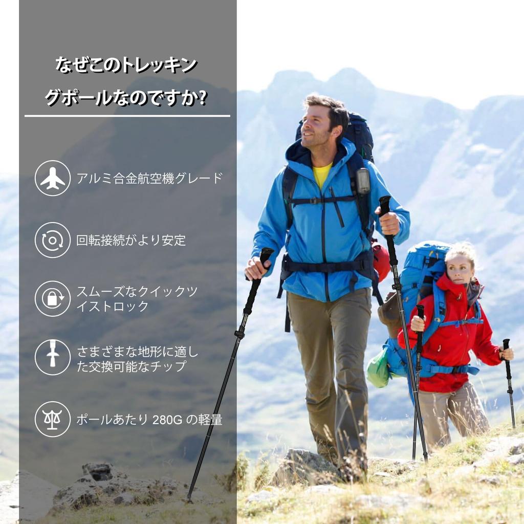 ✅ [Ультралегкий материал]: Корпус походной палки изготовлен из алюминиевого сплава 7075 авиационного класса, который легче, чем алюминиевый сплав 6061, обладает более высокой прочностью на нагрузку и устойчив к трению. Захватная рукоятка повторяет форму вашей ладони и изготовлена из ЭВА высокой плотности, который впитывает пот и обеспечивает нескользящий захват.. Двухслойный, дышащий, регулируемый ремешок для запястья позволяет отрегулировать длину по вашему желанию и отражает свет для удобного и безопасного использования.