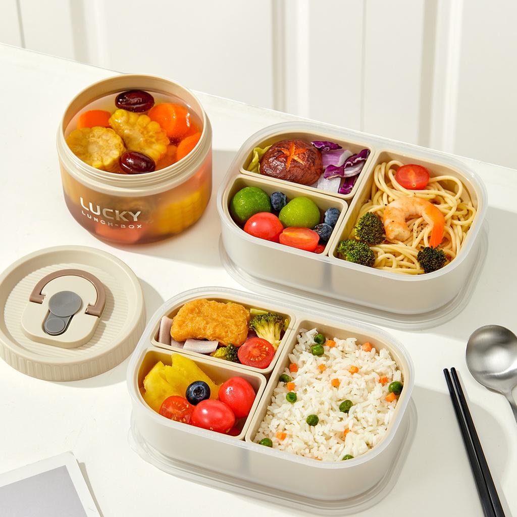 3 Compartment Plastic Bento Lunch Box Kids Students Microwave Safe Removable Portable Sealed Lunch Container For School Picnic
