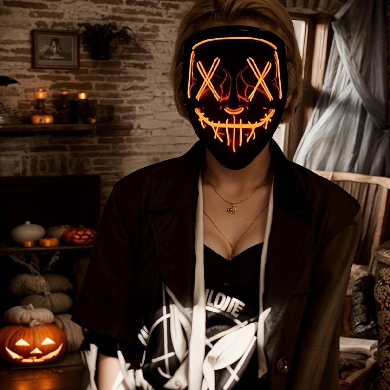 LED Wire Light Up V Face Horror Mask Scary Cosplay Costume Prop for Halloween Party Masquerade Dress Up Decoration
