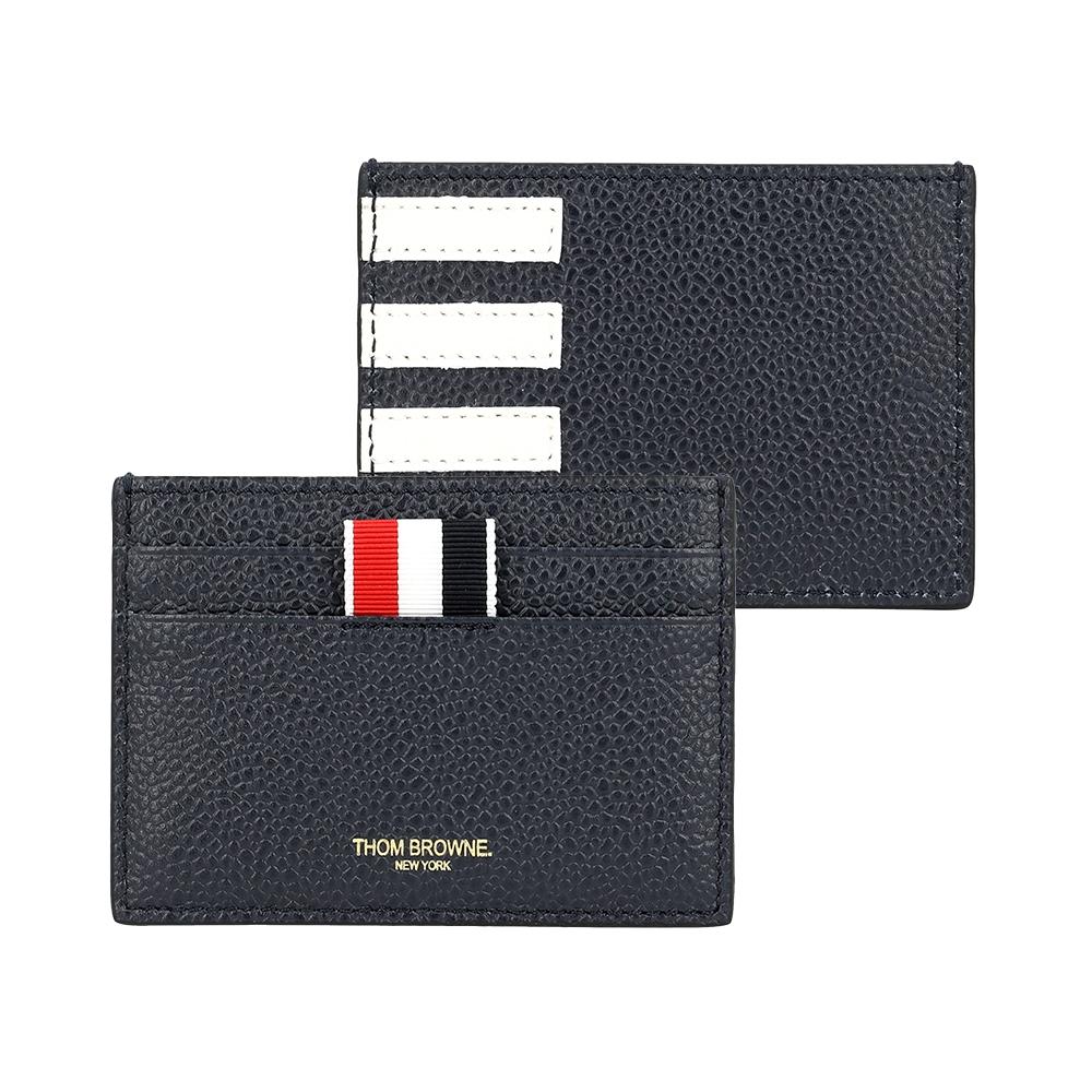 The Thom Browne UAW075A 00198 415 Pebble Grain 4-Bar Stripe Cardholder is a men’s cardholder that features the signature 4-bar stripe design. Made from pebble grain cowhide leather, it offers excellent durability and a refined texture. The iconic 3-stripe logo emphasizes the brand and adds a fashionable touch, while the spacious card slots ensure both practicality and style.