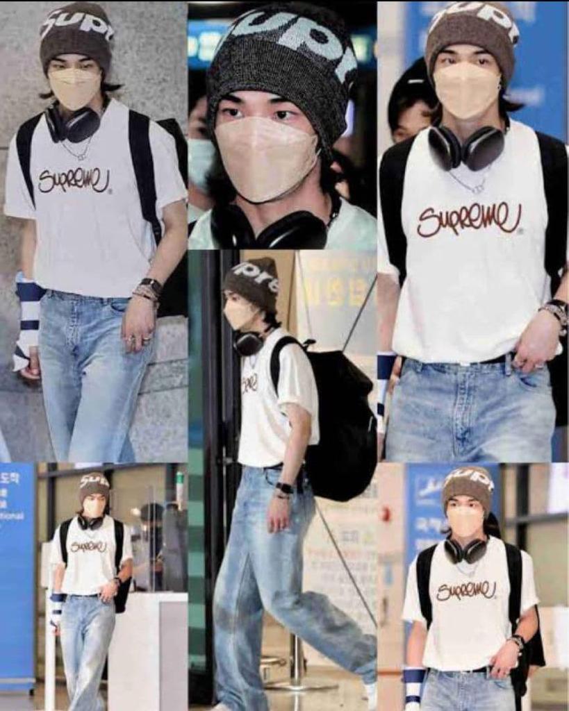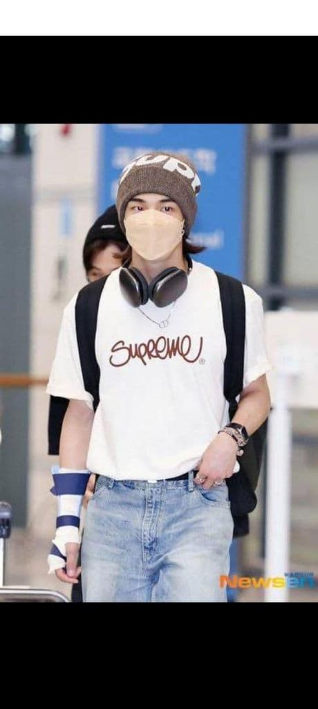 [USED] Stray Kids' Hyunjin wears a Supreme T-shirt in black (size L)