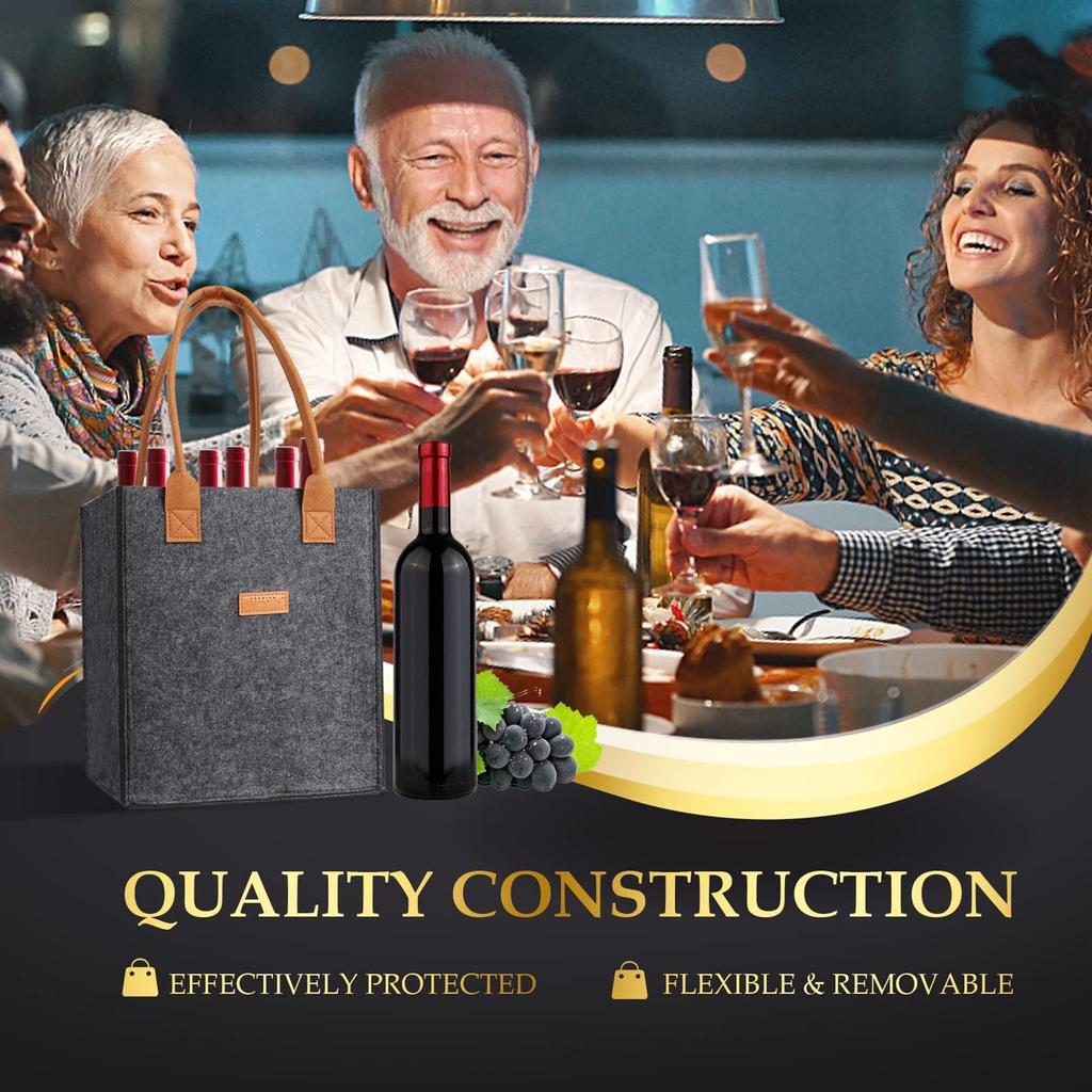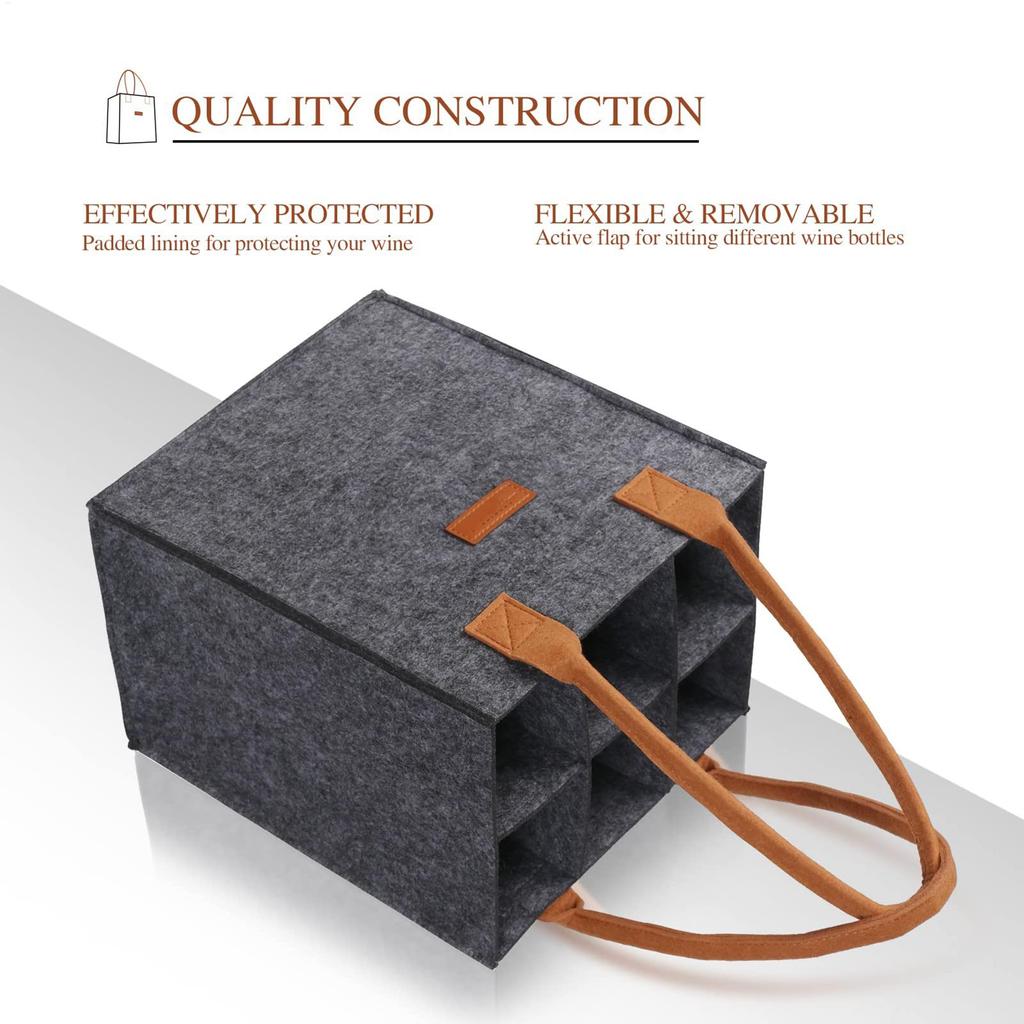 6Compartment Bottle Holder for Wine Beer Water Portable Felt Wine Bottle Bag Carrier with Handles for Wedding Travel Picnic