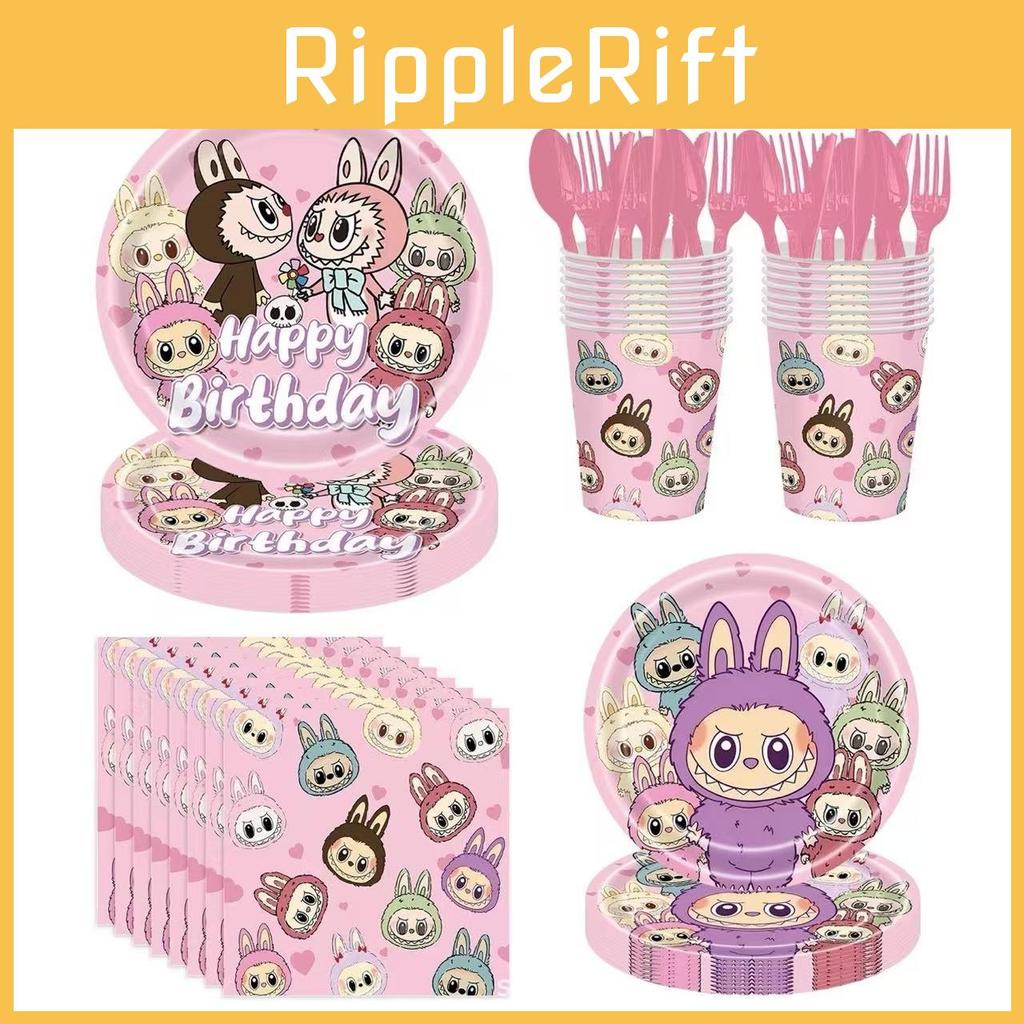 Набор для украшения вечеринки Лабубу с красочными баннерами для празднования детского дня рождения
