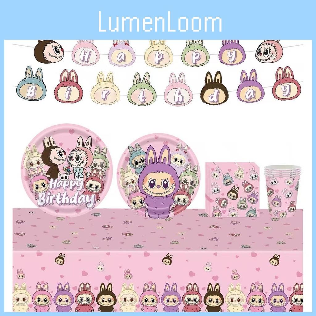 Набор для украшения вечеринки Лабубу с красочными баннерами для празднования детского дня рождения