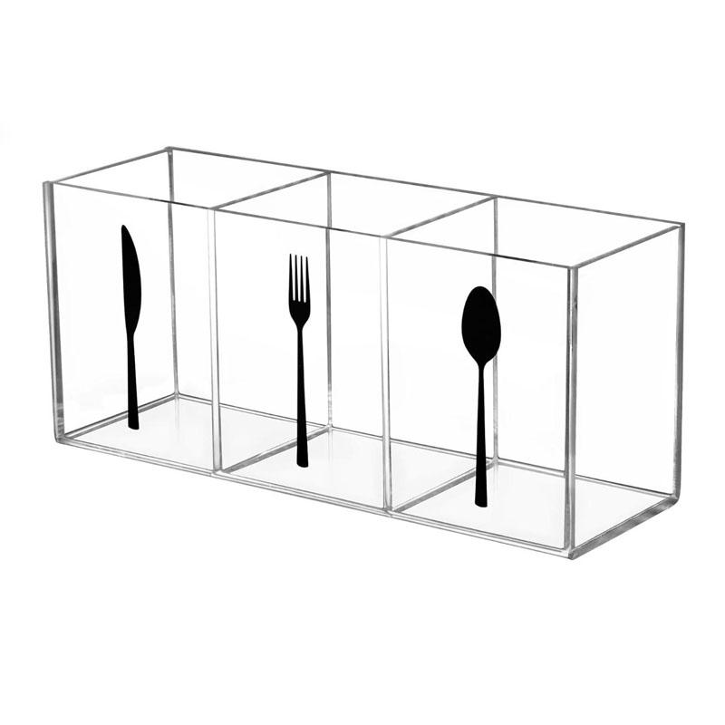 Прозрачный акриловый органайзер для столовых приборов, пластиковый держатель на 3 отделения для посуды, принадлежности для декора кухни, дома, улицы