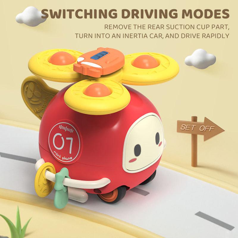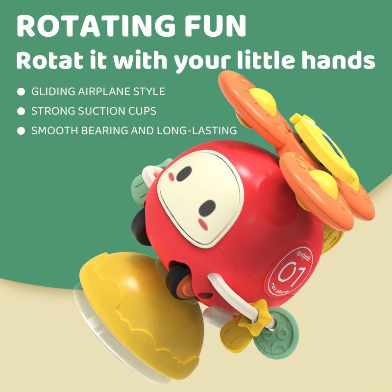 Детский мультяшный забавный развивающий пазл на присоске, инерционная игрушка в форме самолета с вращающимся успокаивающим гироскопом