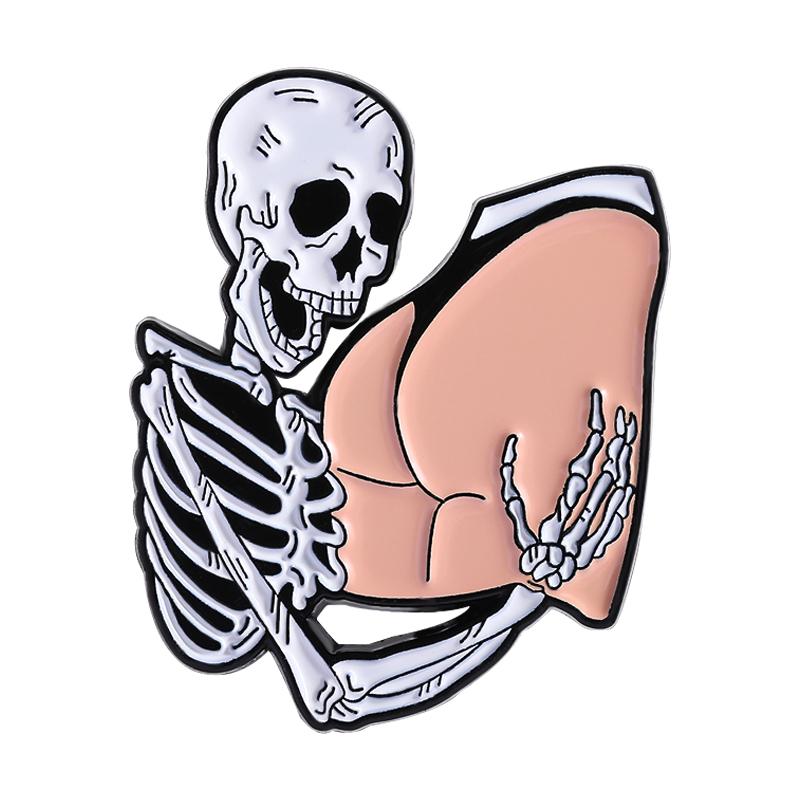 Punk Skeleton Butt Enamel Pins Custom Sexy Brooches Lapel Badges Clothes Gothic Jewelry Gift for Friends