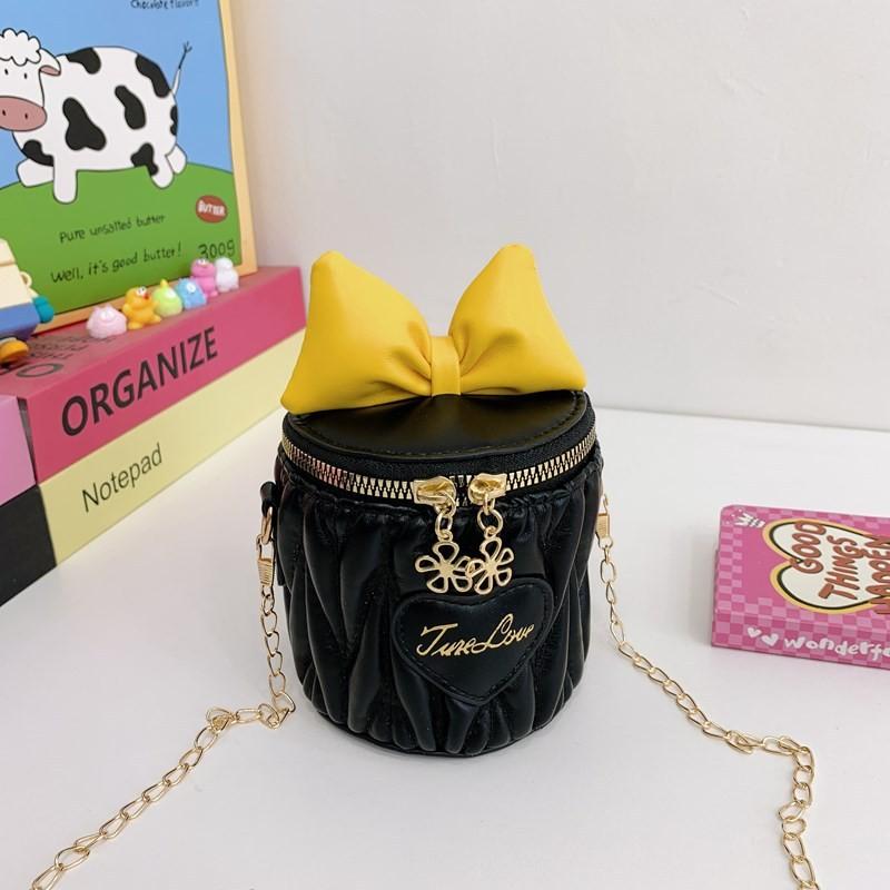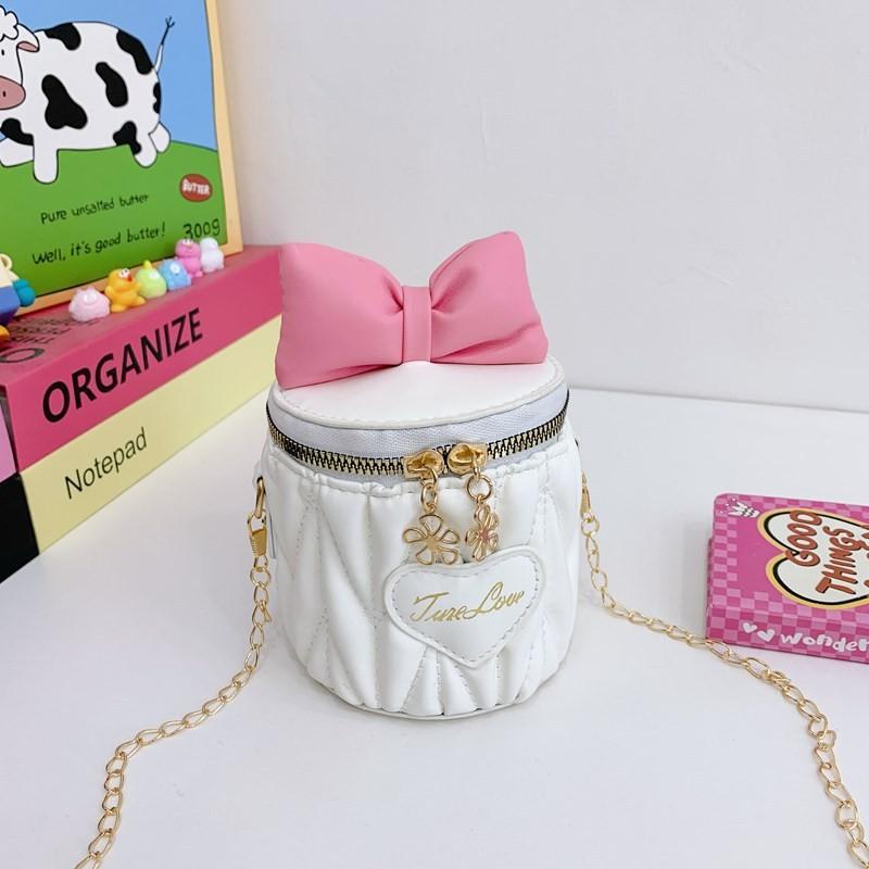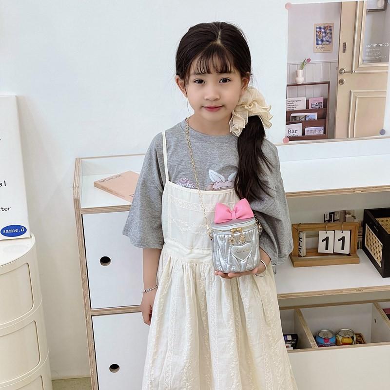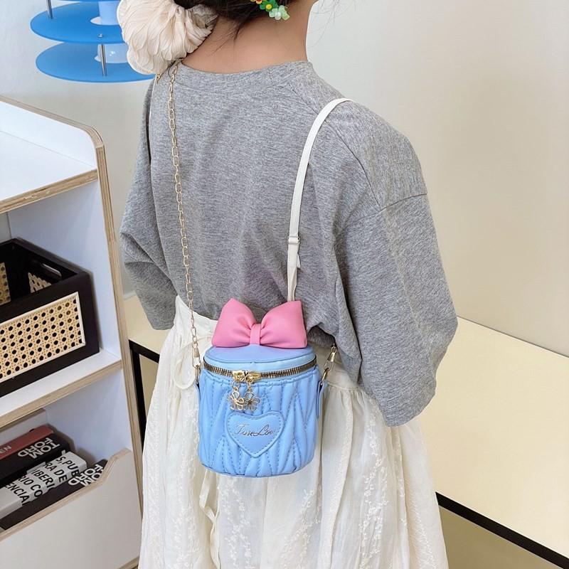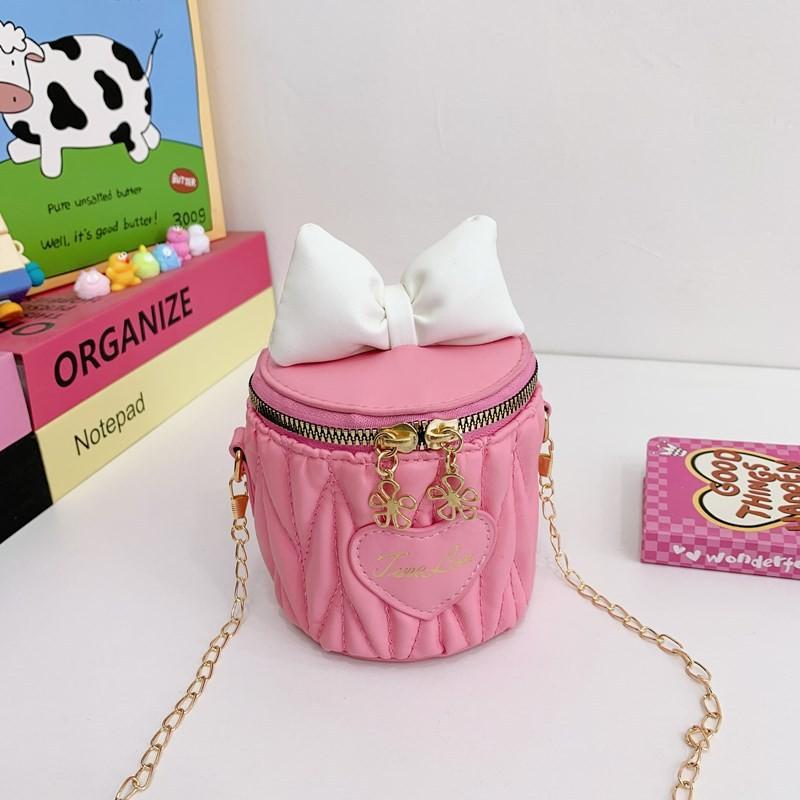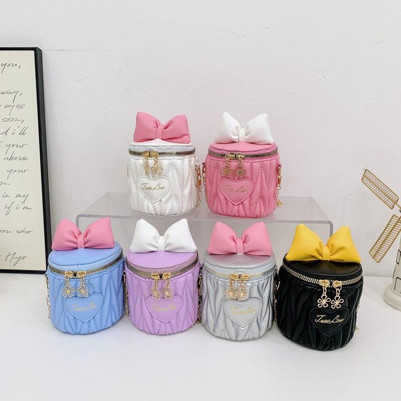 This girls water bucket bag features a charming butterfly knot design with a playful heart pattern, suitable for children daily use. Made of durable PU material, it measures approximately 15*11*11cm deep, with a polyester lining for added durability. Its lightweight and breathable construction make it ideal for kindergarten-aged children. The bag supports casual outings, school activities, or weekend trips. Wipe clean with a damp cloth to maintain its vibrant appearance.