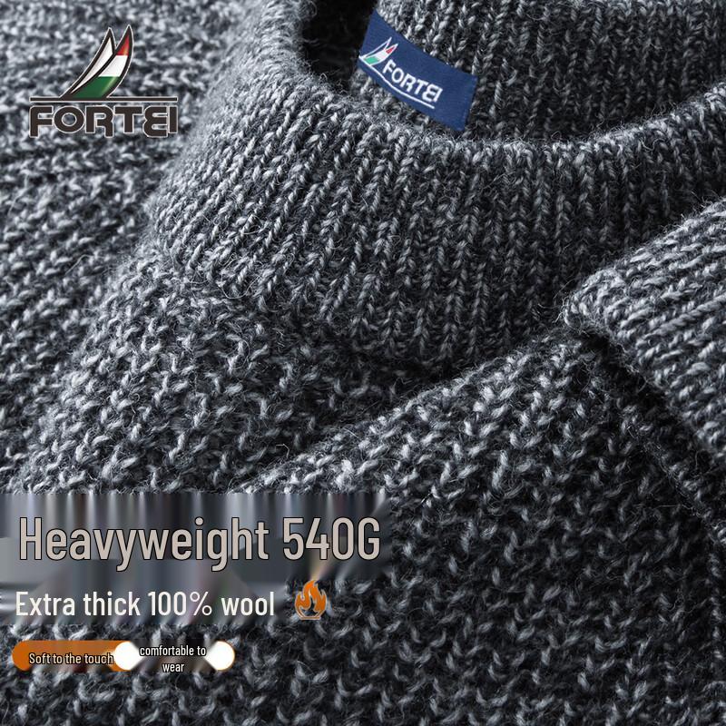 Мужской свитер из 100% мериносовой шерсти, 540 г, тяжелый вес, с круглым вырезом