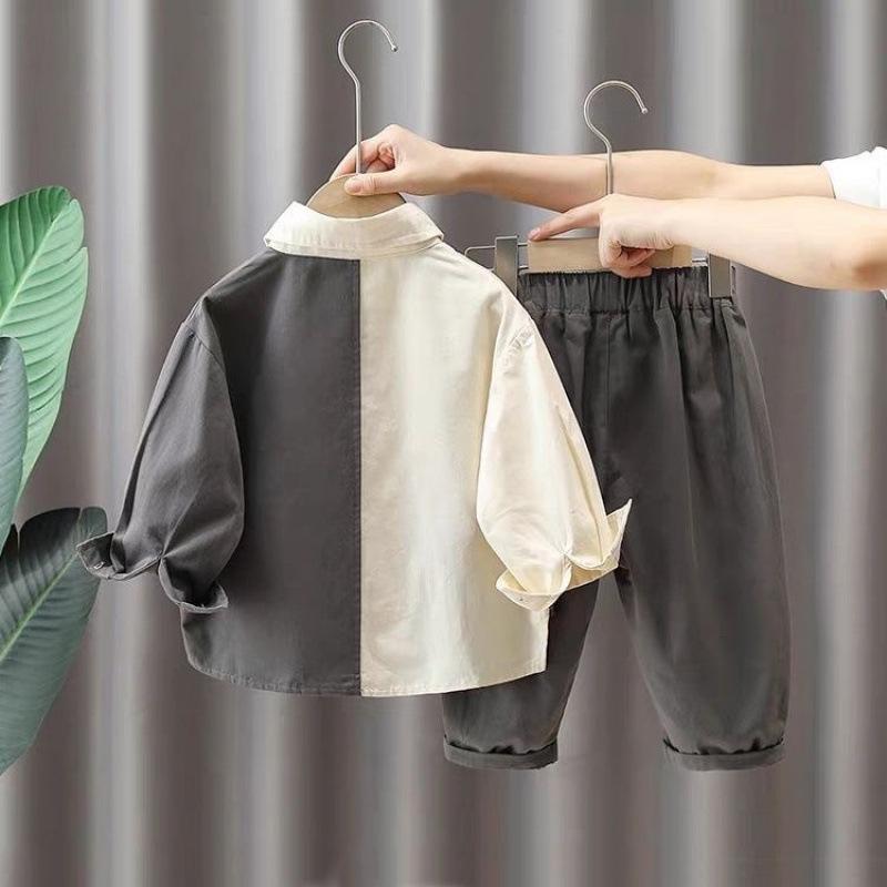 Детский комплект для мальчиков на весну и осень, комплект из двух предметов: рубашка с длинным рукавом для детей, модный