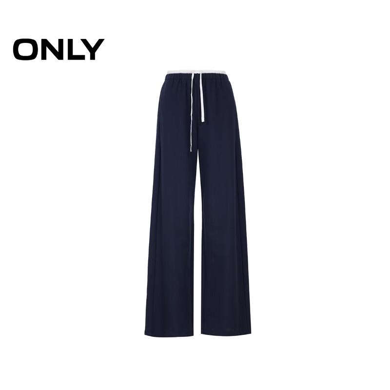 ONLY Women's Relaxed Fit Color-block Waist Straight-Leg Casual Pants