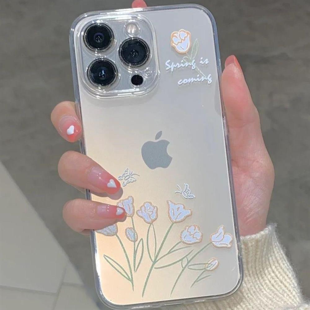 Tulip for Apple 16pro Phone Case New Silicone Anti Drop All Inclusive 13 Transparent Summer Phone Premium