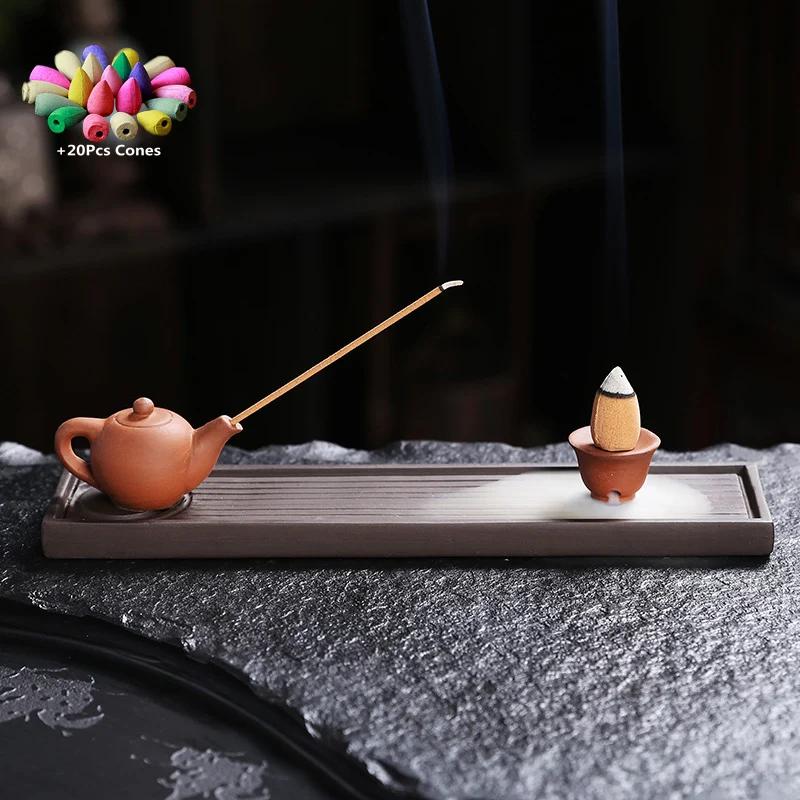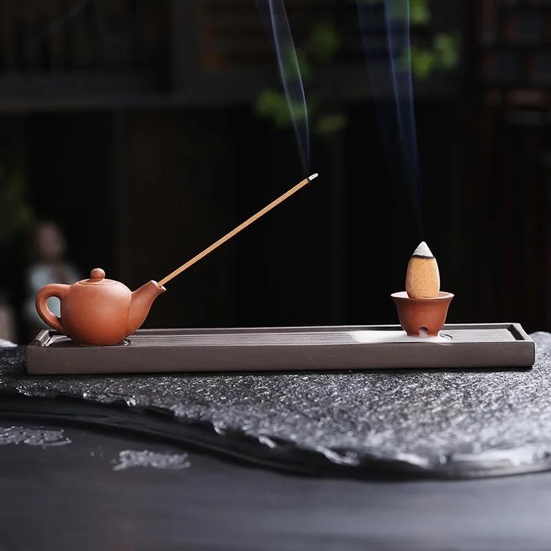 Керамические украшения, изделия ручной работы, прямоугольный чайник, водопад, курильница с обратным потоком, фиолетовая глиняная палочка-держатель для благовоний, курильница для чая, питомец