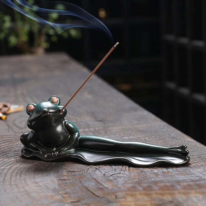 1 шт., керамическая, креативная, лягушка, держатель для благовоний, ароматерапия, домашний декор, курильница, чайное питомец (Без благовоний)