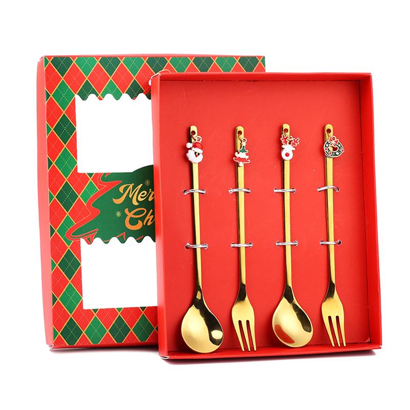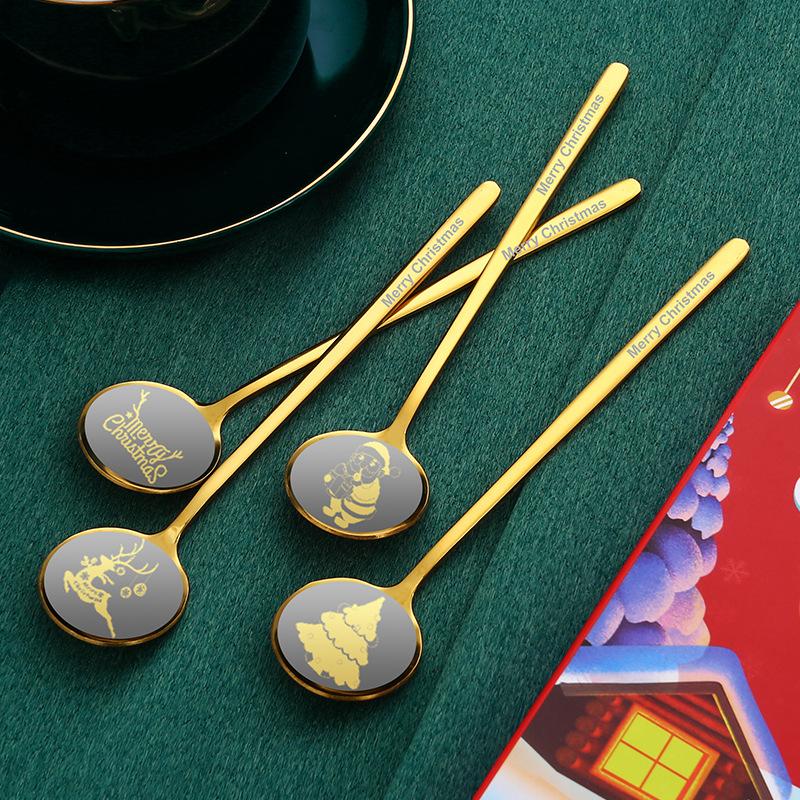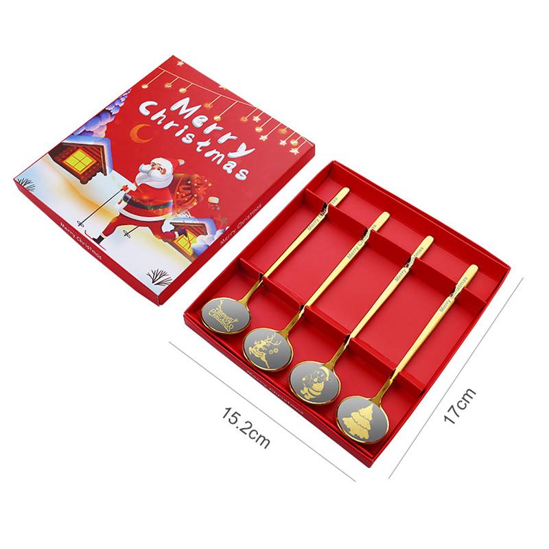 4 шт. Рождественская кофейная ложка из нержавеющей стали Рождественское украшение Посуда с подарочной коробкой Лось Снеговик Рождественская елка Сладкая ложка
