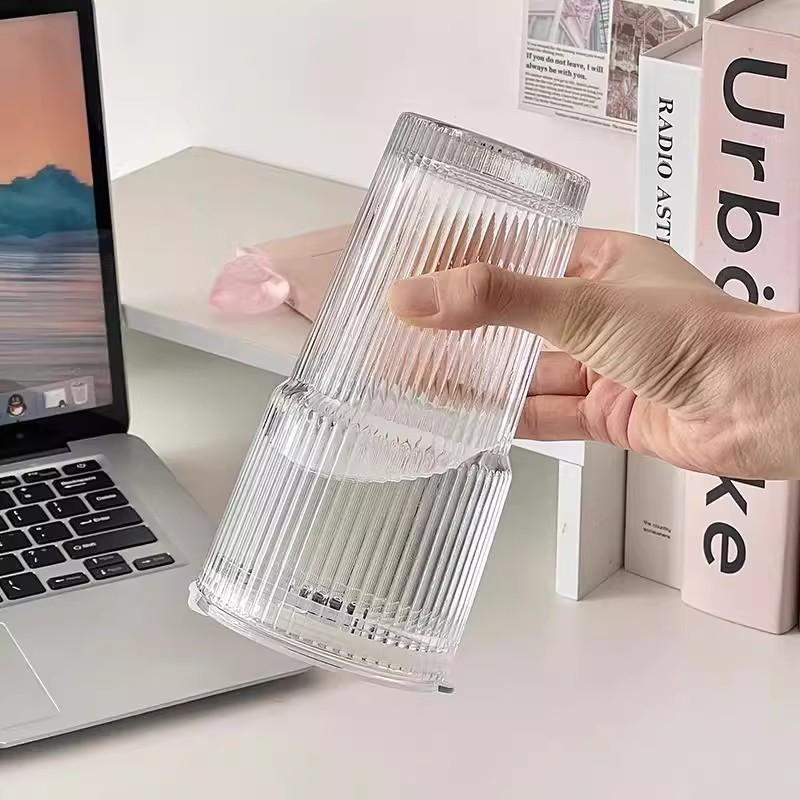 Large Capacity Stripe Glass Coffee Cup With Lid Cover Straw Transparent Drinking Glasses For Juice Iced Coffee Mugs Drinkware