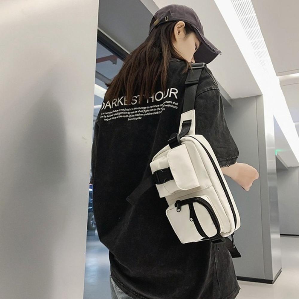 Сумка на грудь мужская на молнии, карманная, одноплечевая, модная нейлоновая поясная сумка для улицы