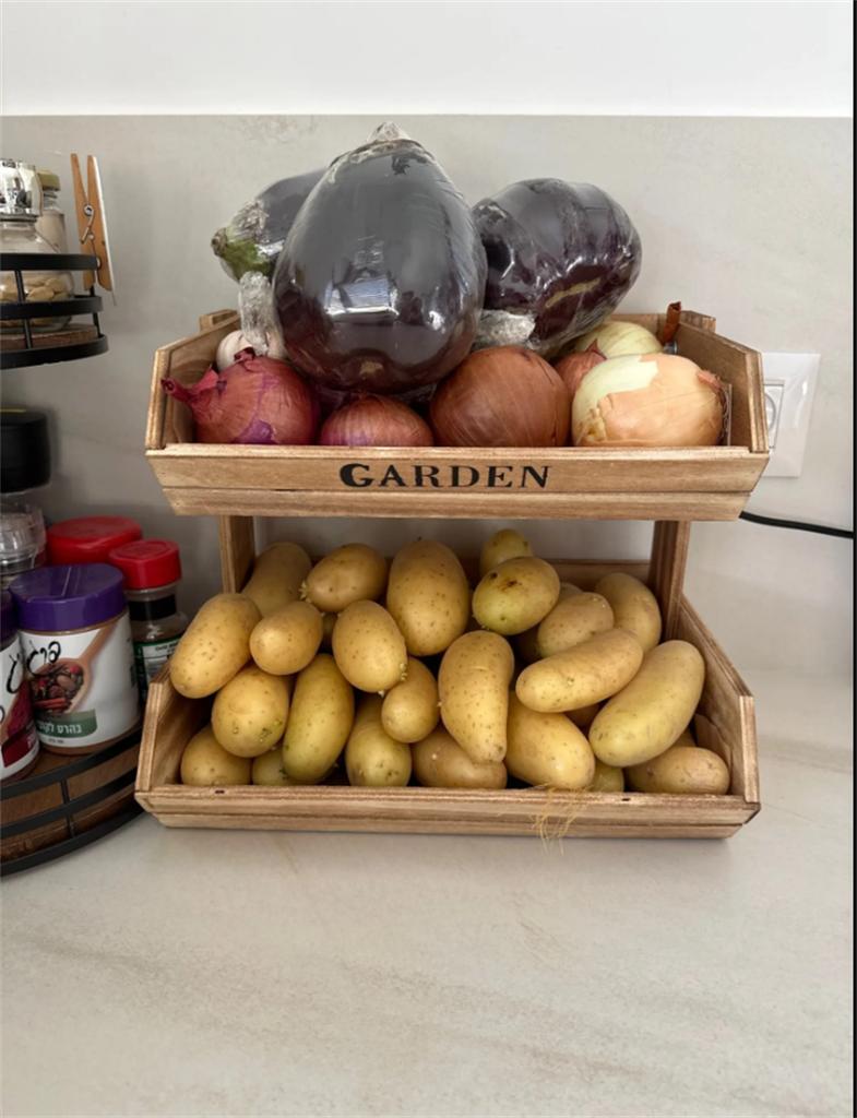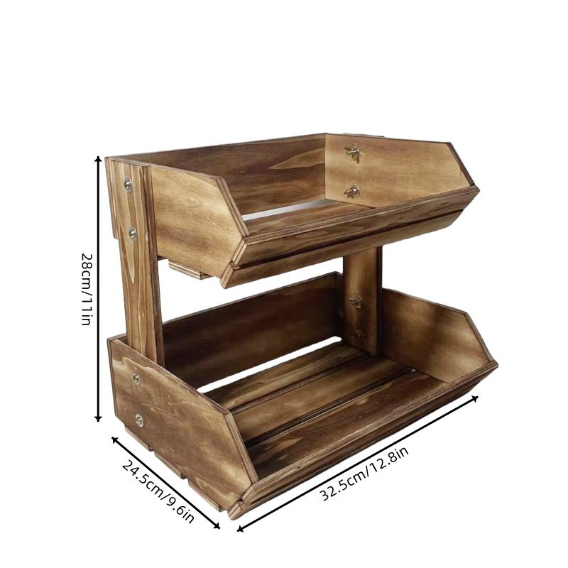 2-Tier Fruit Basket Kitchen Storage Basket Multipurpose Wooden Food Container Vegetable Cake Holder Kitchen Accessories