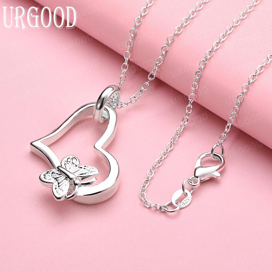 925 Sterling Silver Butterfly Heart Necklace Fashion Wedding Jewelry