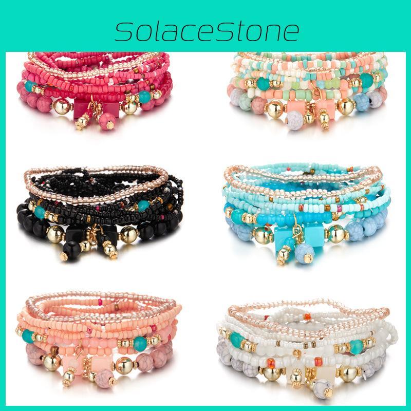 Богемный набор браслетов из бисера с бирюзовой эластичной нитью для подарков и сувениров из путешествий