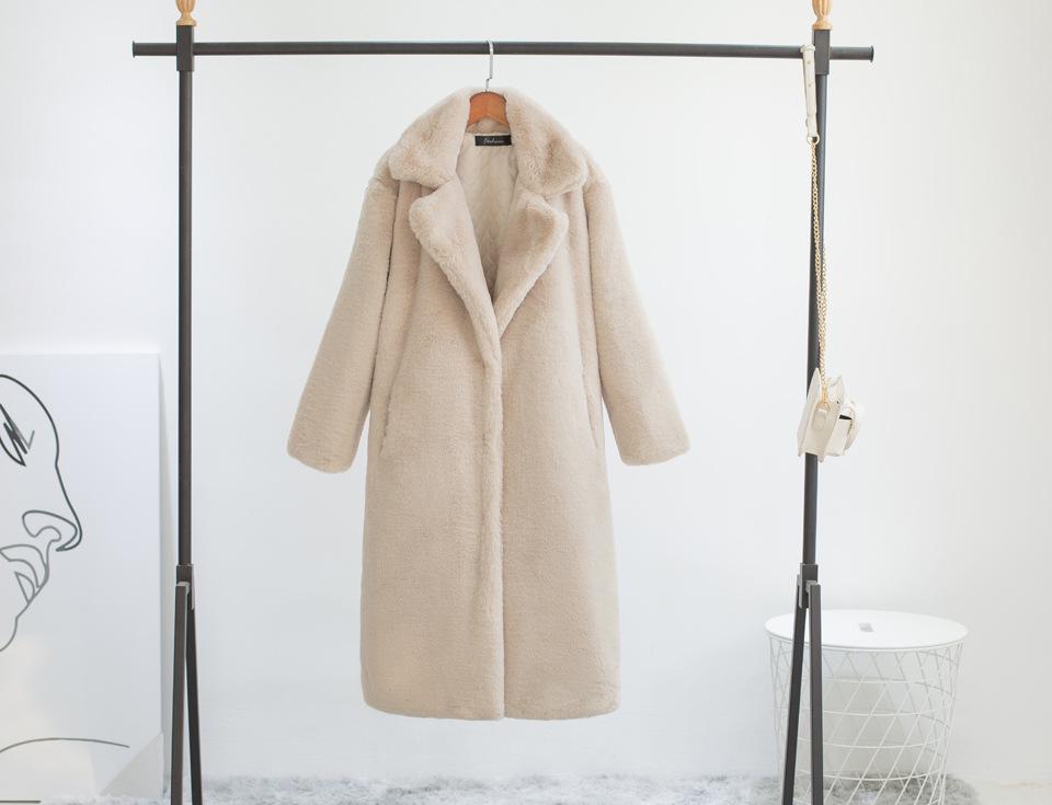 Женское премиальное зимнее длинное пальто из искусственного меха с хлопком и кашемиром