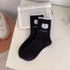 Хлопковые кошачьи носки: Женские до середины икры, весна/осень, японский и корейский стили преппи, флокированный ворс, длинные носки.