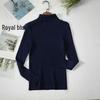 Женский пуловер с высоким воротником на осень/зиму 2025 года, с длинным рукавом, облегающего кроя, однотонный трикотаж