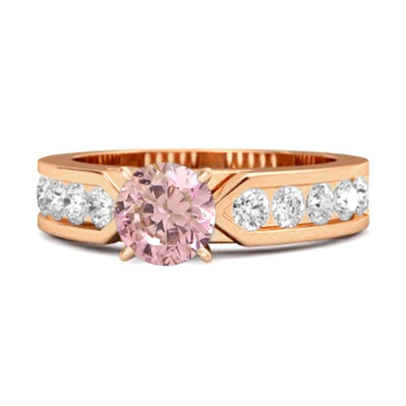 Кольцо из стерлингового серебра с розовым кубическим цирконием 0,64 карата и широким ободком, украшенным кубическим цирконием.. Женственный и современный — идеально подходит для подарка или повседневного стиля.