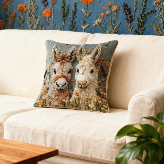 Очаровательный принт с ослом с художественной детализацией: Этот наволочка, украшенная очаровательными иллюстрациями ослов, выполненными с помощью изысканной двухмерной плоской печати в сочетании с мастерством, напоминающим вышивку, добавляет игривую причудливость и художественный колорит.. Он украшает любую комнату своим уникальным и привлекающим внимание дизайном.