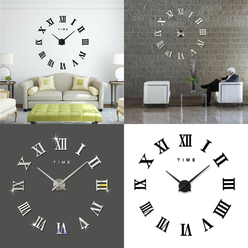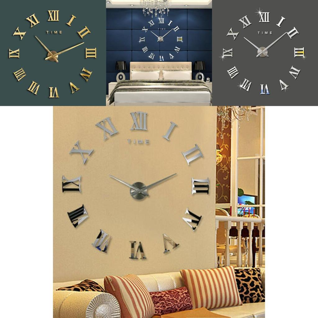 Элегантные 3D DIY Римские цифры Роскошные зеркальные настенные часы-наклейка для домашнего декора