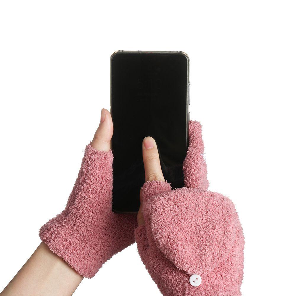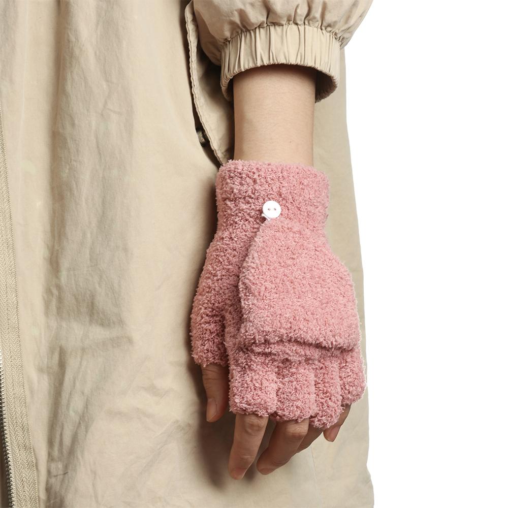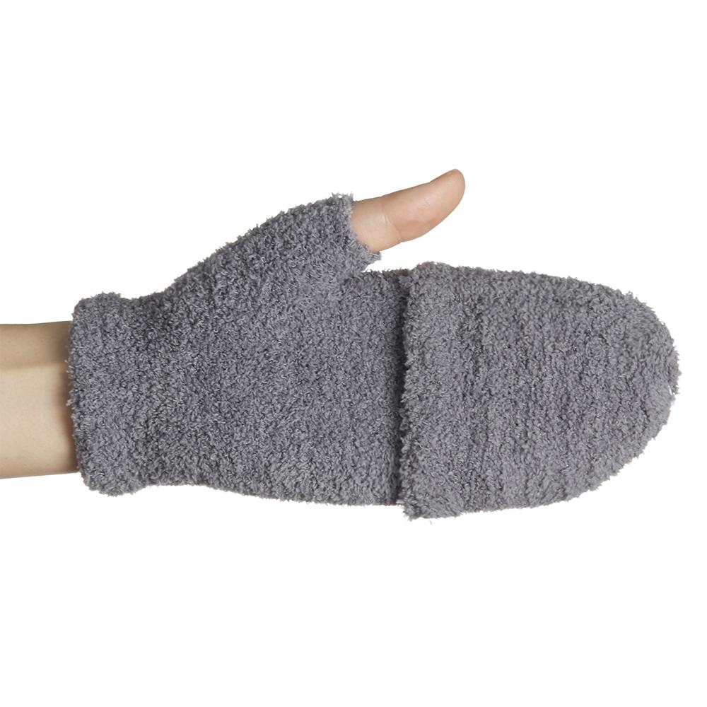 Теплые Зимние Толстые Перчатки с Открытыми Пальцами и Откидным Верхом из Кораллового Вельвета Вязаные Варежки
