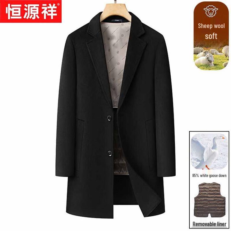 Hengyuanxiang Мужское полупальто из смесовой шерсти со съемным пуховым подкладом средней длины
