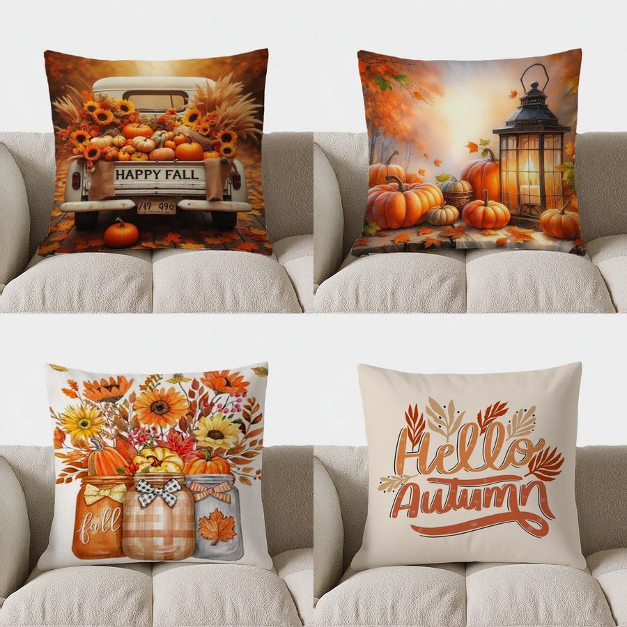 Домашний декор Тыквы в пятнышко и осенние листья Узор для подушки Наволочка Подходит для дивана, спальни, автомобиля Наволочка